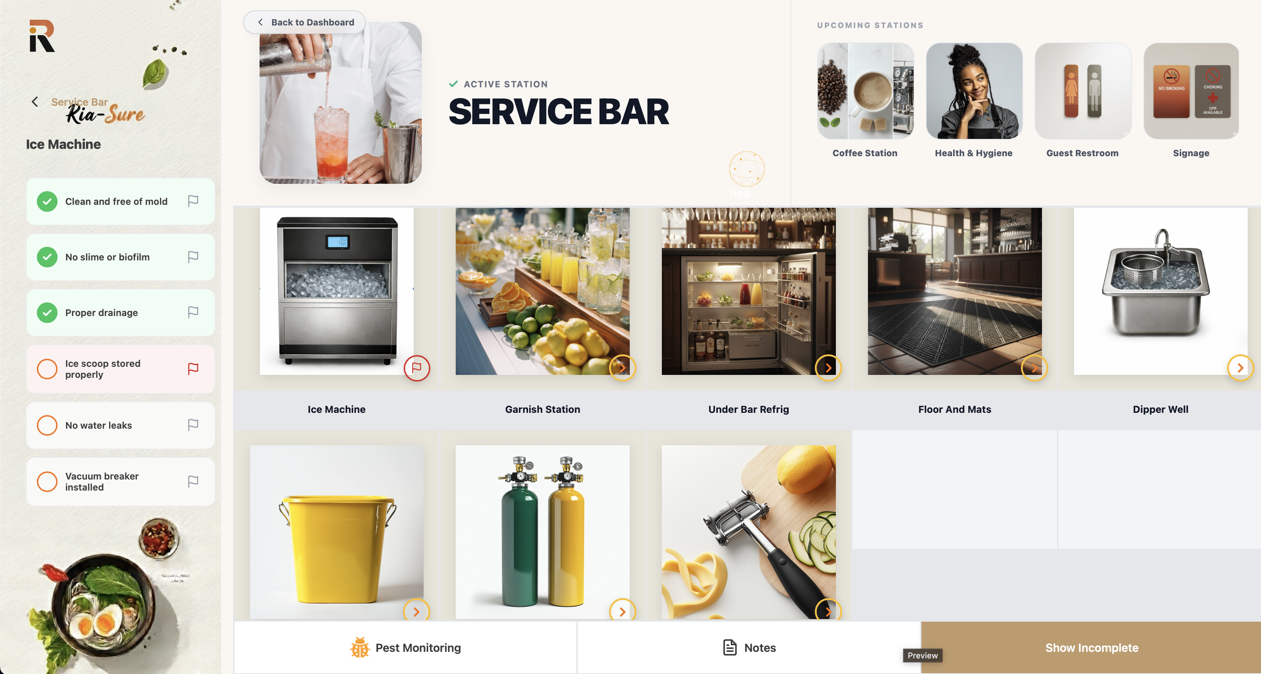 ✅ “Ria walks you through daily health inspection checks, using guided checklists and temperature monitoring. It ensures your restaurant stays compliant with NYC Health Department regulations, so you’re always ready for an inspection.”